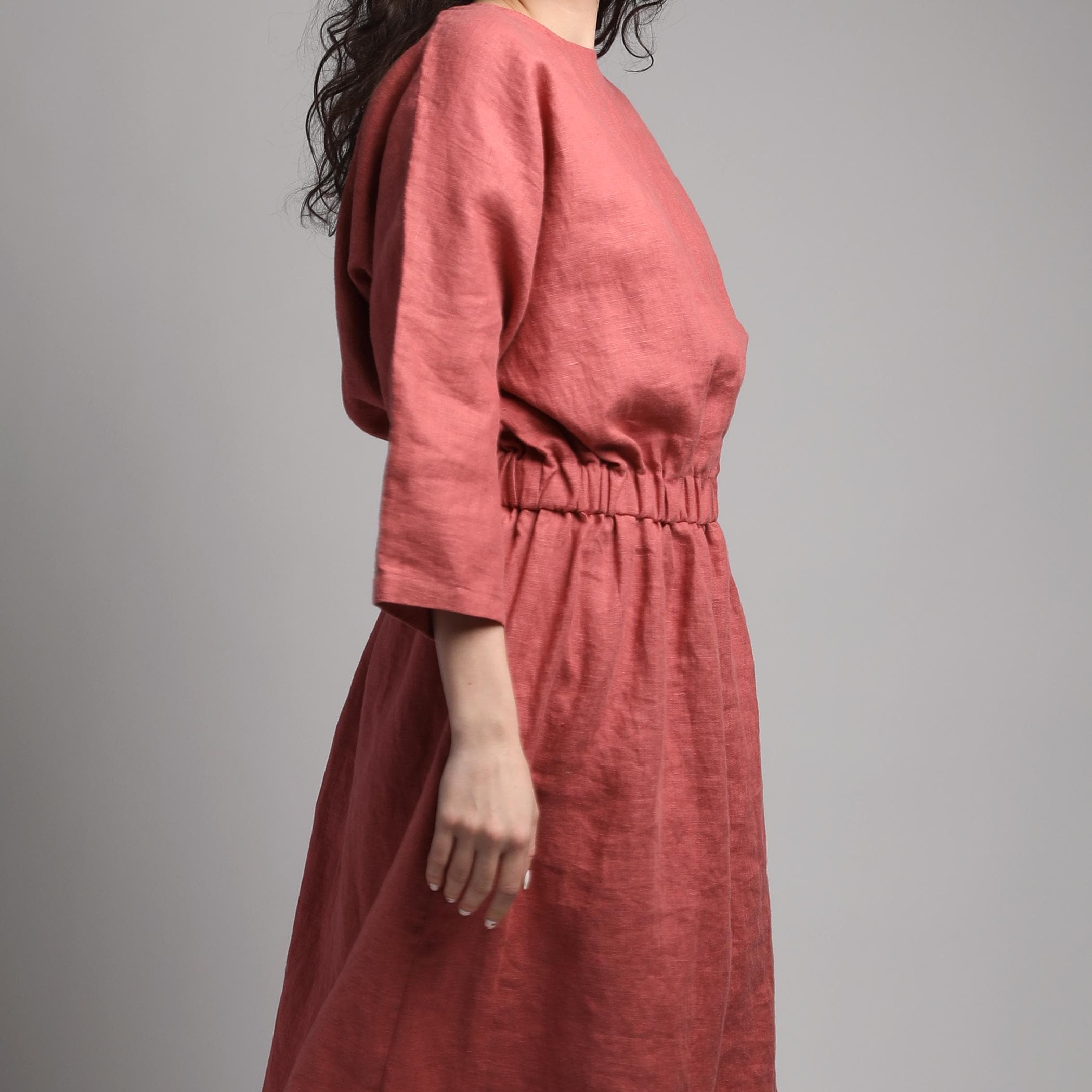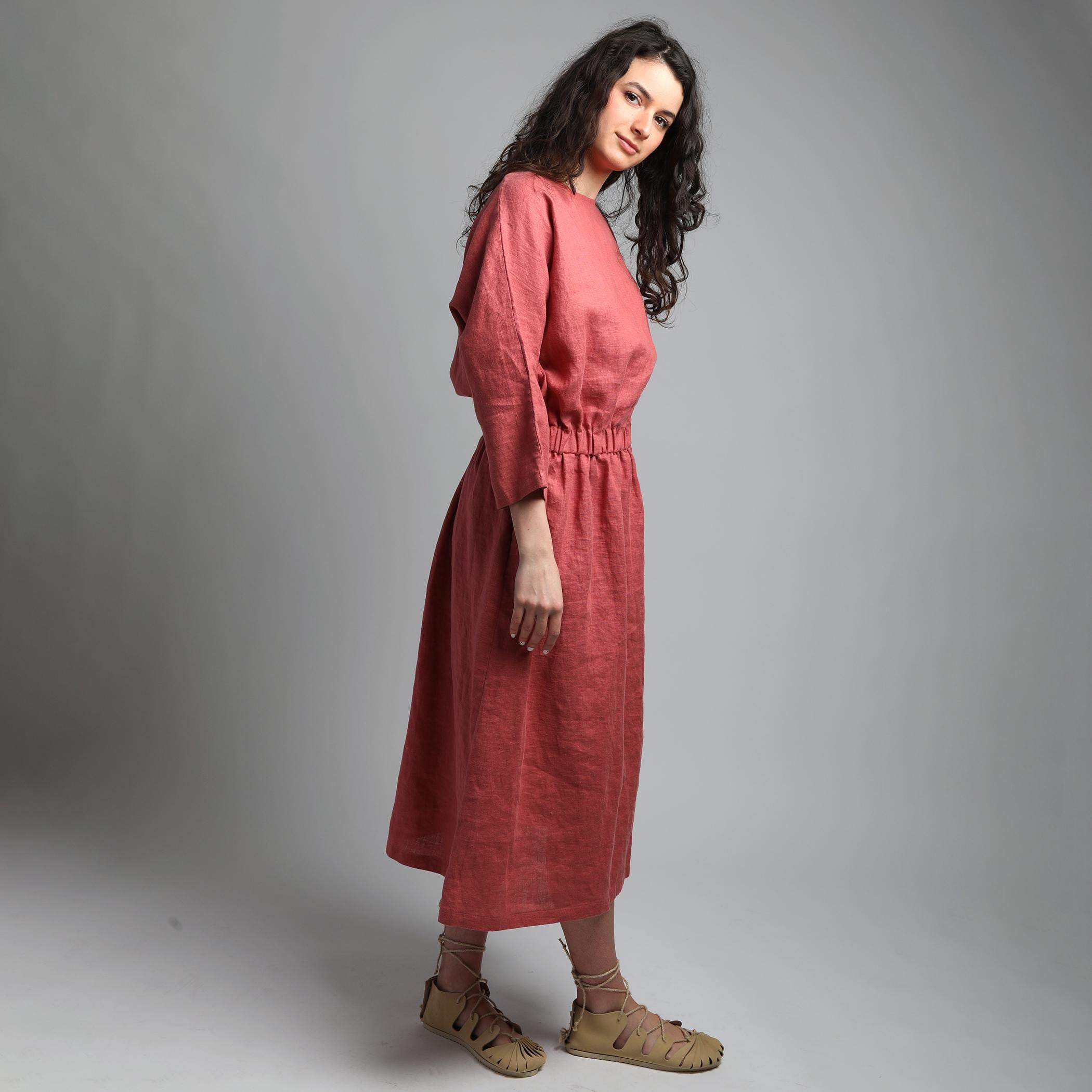 Step into effortless elegance with our handmade linen dress, crafted for those who appreciate timeless style and sustainable fashion. Made from high-quality Lithuanian linen, this boho-inspired piece features a cinched waist, simple lines, and a flowing silhouette, designed for both comfort and sophistication. Shown in color Red Grapefruit.